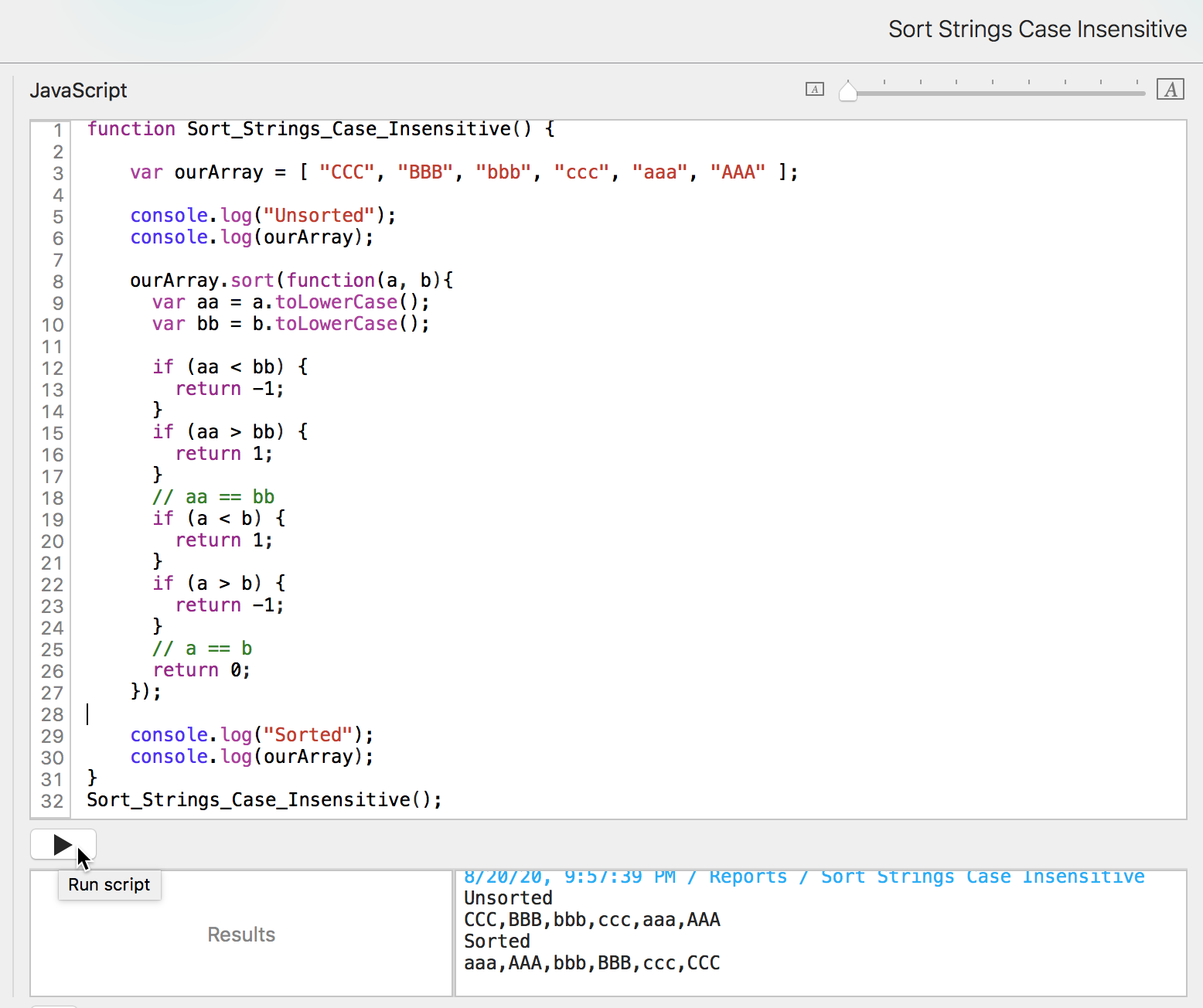 But what if we want the lowercase versions first? Reverse the 1 and -1 for the return values for matching elements.