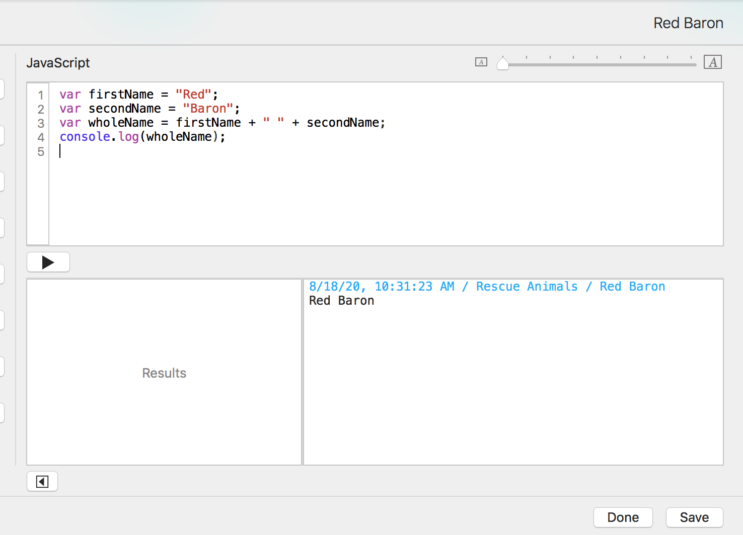 We'll start with the string. You may recall some string concatenation from Tap Forms Scripting 101.