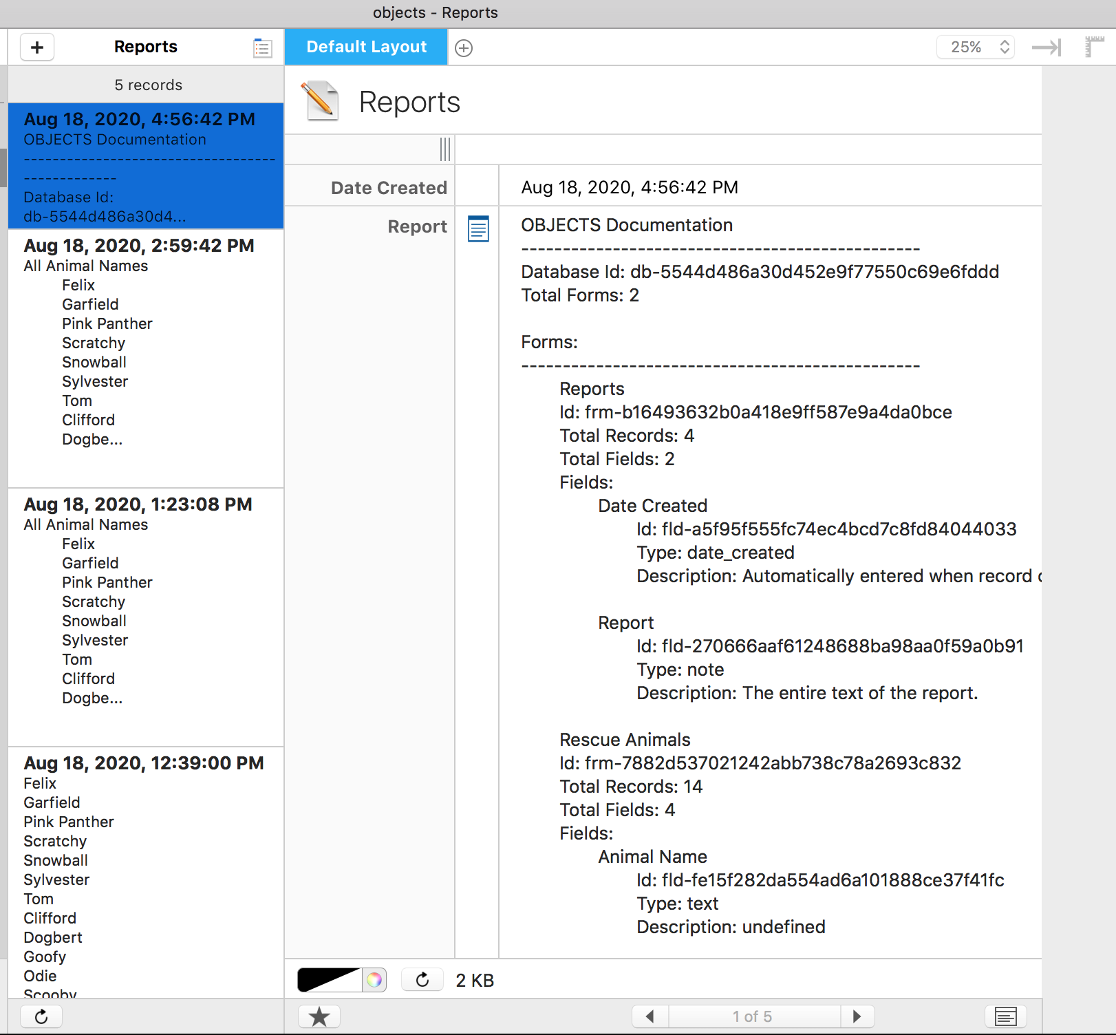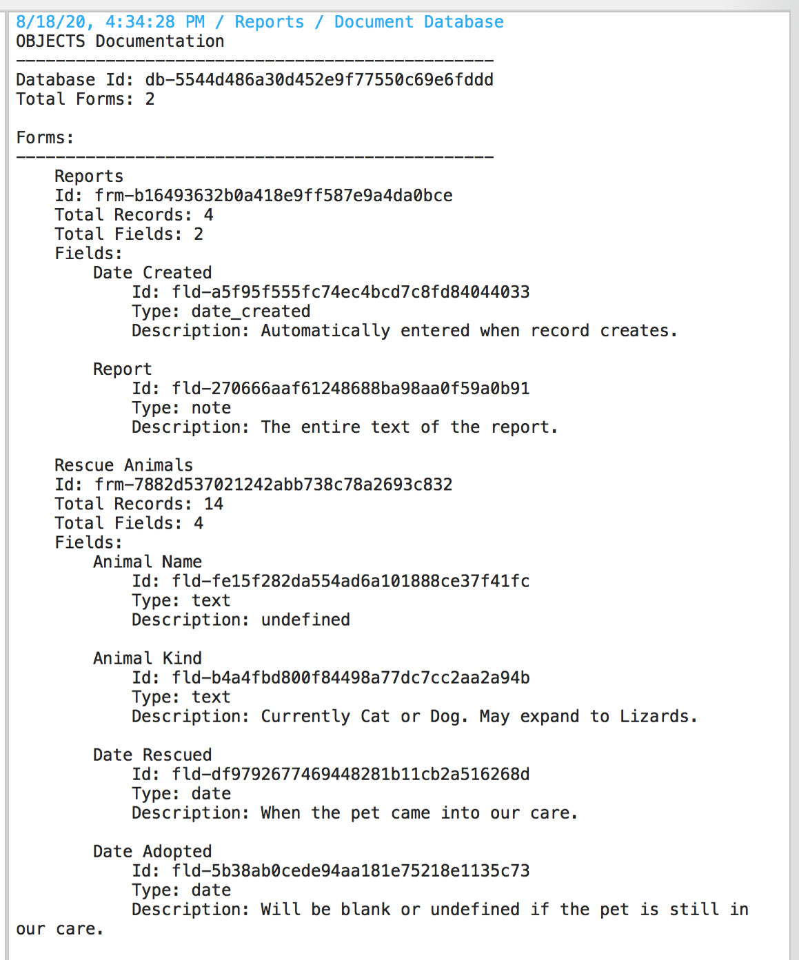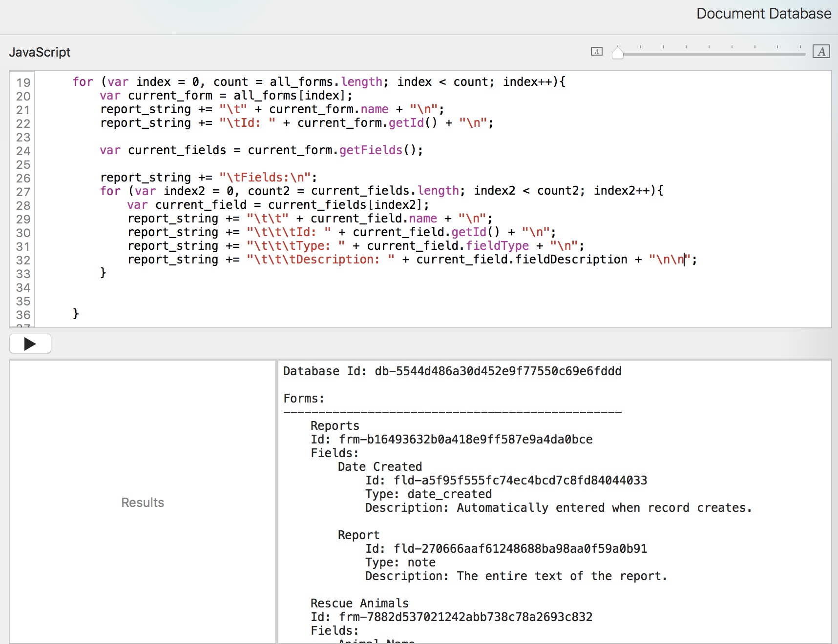 Now we can run the Document Database script from the pulldown and have a new report record.