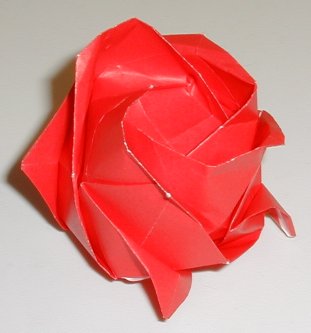 Growing a Paper Rose (828 KB). - My fourth origami animated gif shows paper evolving into Kawasaki's Rose.