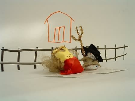 Buttercup: I was also in the wrong costume because I sent the red dress to the cleaners. The cleaners weren't in the budget, so I think they let the horse drag it around for a while hoping that the dust would make it less sticky.